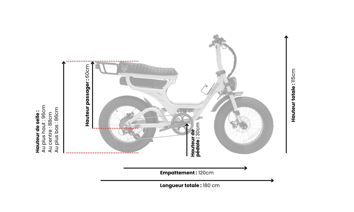 A pesar de su robustez, la Fat Street sigue siendo ligera gracias a su estructura de aluminio, que pesa sólo 28 kg. Esto la convierte en una bicicleta eléctrica de dos plazas fácil de maniobrar. Ofrece una experiencia de conducción similar a la de una bicicleta clásica, al mismo tiempo que ofrece un estilo único y asistencia eléctrica con sus 5 modos de asistencia. La fatstreet tiene una capacidad de carga de 180 kg.