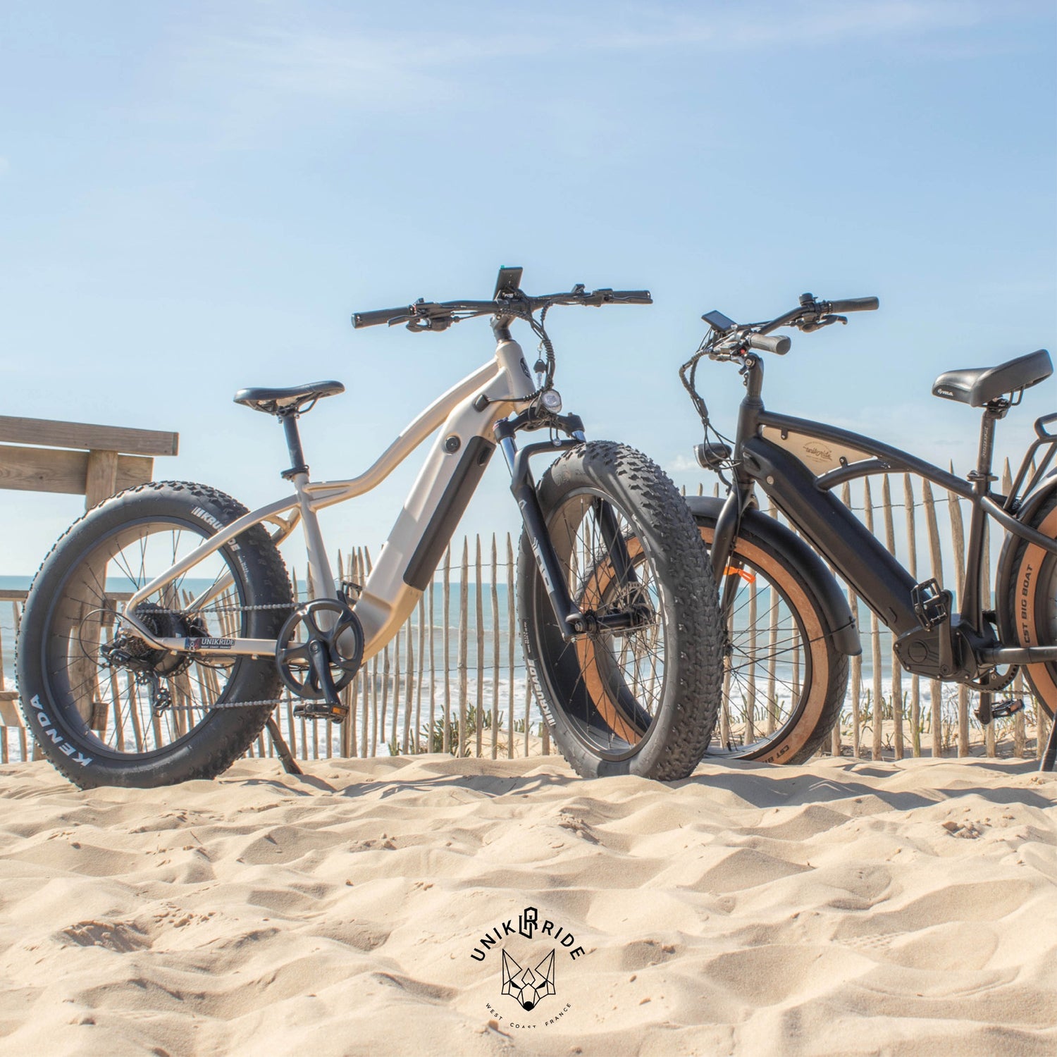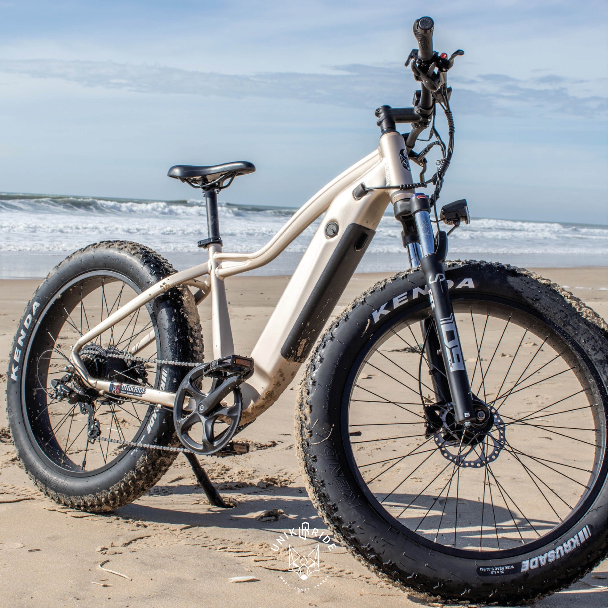 Una fat bike eléctrica es una bicicleta todoterreno equipada con neumáticos anchos, generalmente de 4 pulgadas o más de ancho, diseñada para brindar un agarre excepcional en una variedad de terrenos, incluidos arena, nieve, barro y senderos de montaña.